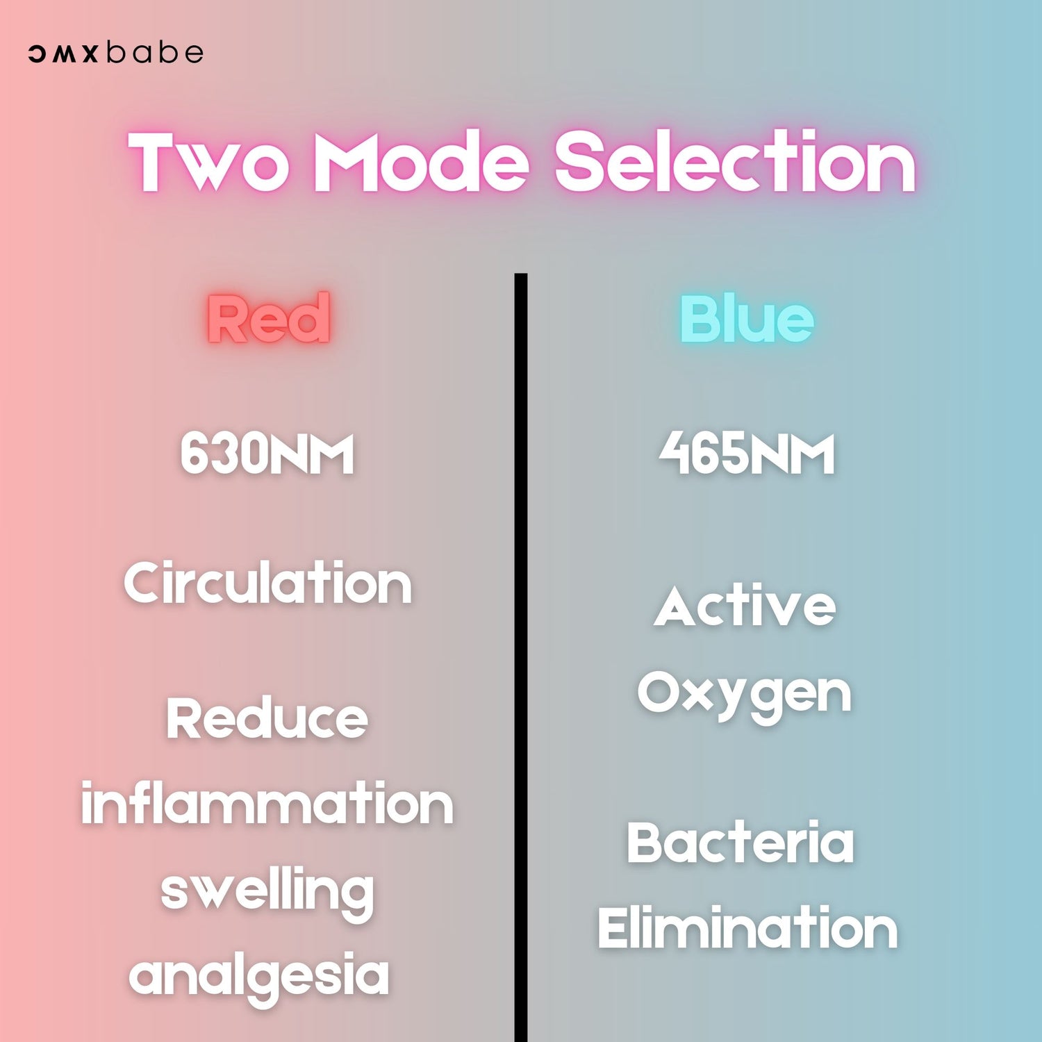 Our product offers two modes: Blue mode promotes active oxygen production for a refreshing experience, while Red mode provides warmth to enhance blood circulation and tighten skin for a revitalized look.